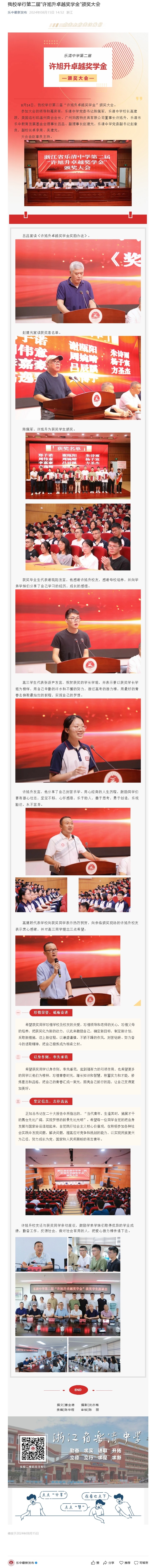 我校举行第二届“许旭升卓越奖学金”颁奖大会